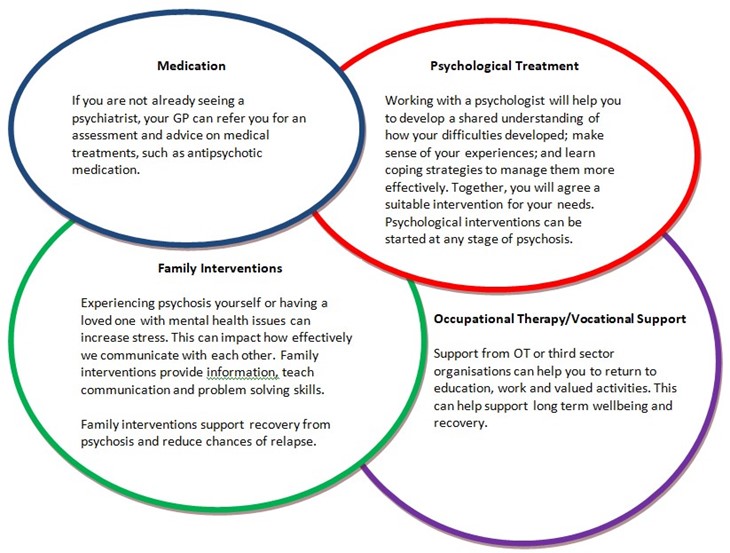 There are various treatments recommended for psychosis, and guidance states a combined approach to treatment provides the best outcomes.