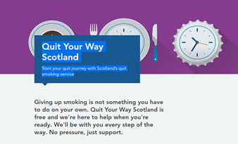 Quit Your Way Scotland is the national Scottish Stop Smoking service and the website containing useful tools. There is live web chat, open Monday to Friday 8.00am to 10.00pm and Saturday and Sunday 9.00am - 5.00pm.